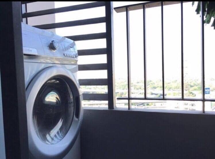 Condo for rent: Fuse Mobius Ramkhamhaeng Station (Fuse Mobius Ramkhamhaeng Station) Price 11,000 baht 1 bedroom 1 bath 29.5 sq m Building B 21st floor Large built-in wardrobe, built-in kitchen set , Built-in bathroom, 5-foot bed with Slumberland mattress, lounge set, sofa, coffee table and side table, TV shelf, mezzanine for storing things, writing desk, fly windows seats for viewing, pleated mosquito net Balcony and fly windows, 180-degree panoramic window with shade-proof double curtain, retractable clothes drying rack, sliding dining table.Appliances: air conditioners, water heaters, LCD TV 32 ", refrigerator, washing machine, microwave.
